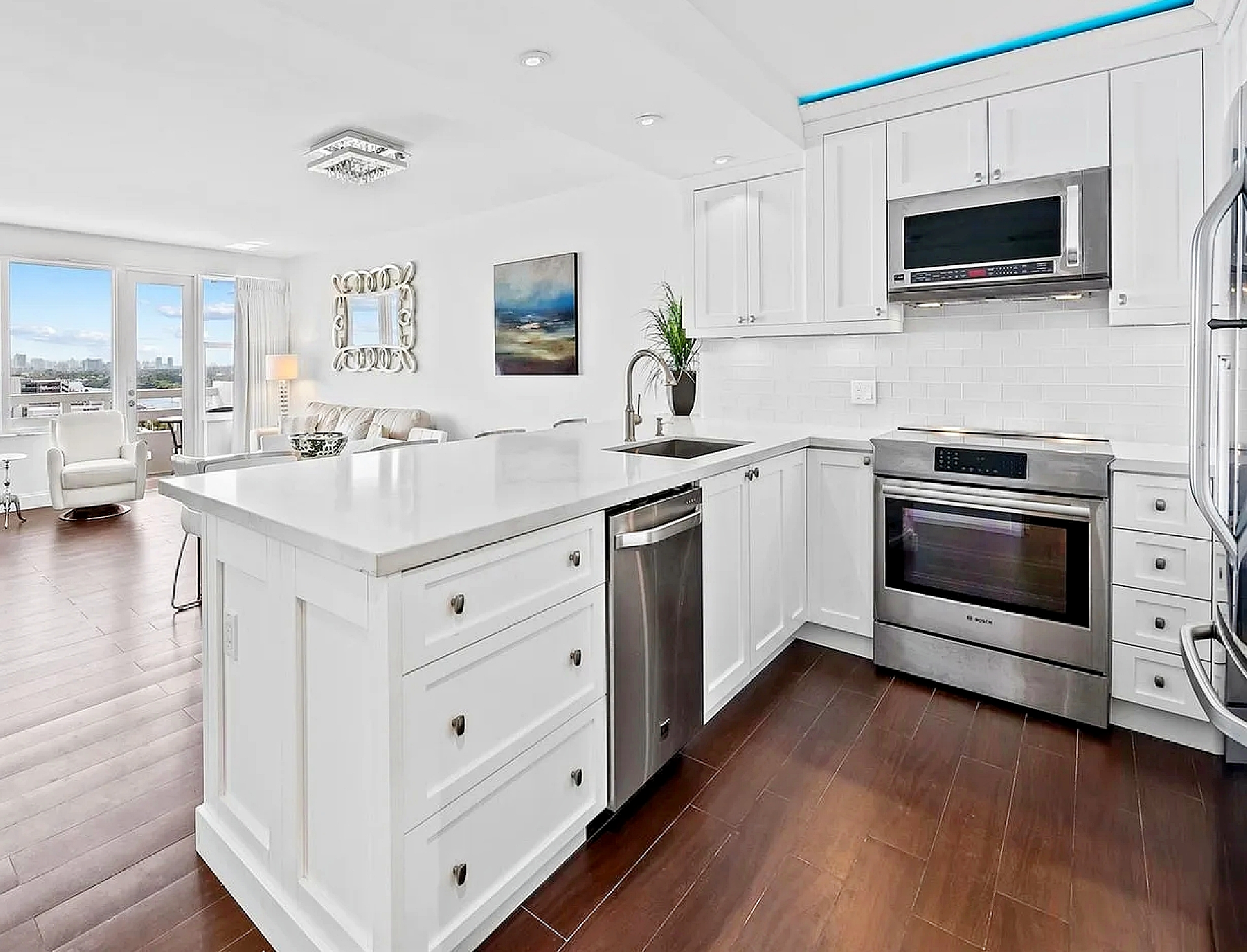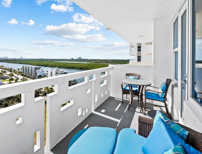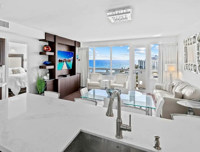 Spanning approximately 812 square feet, the thoughtfully redesigned interior blends refined finishes with functional comfort. Expansive high-impact windows fill the living space with natural light while framing panoramic water views. The private balcony extends the interior outdoors, providing the perfect setting to enjoy morning sunrises over the Atlantic or unwind at sunset with coastal breezes.