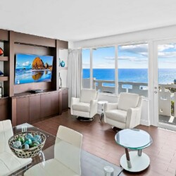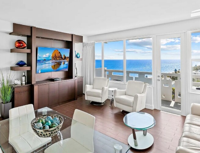 Positioned along the iconic Hollywood Beach Broadwalk, this substantially renovated one-bedroom residence offers sweeping ocean, Intracoastal, and skyline views from an elevated coastal setting.
