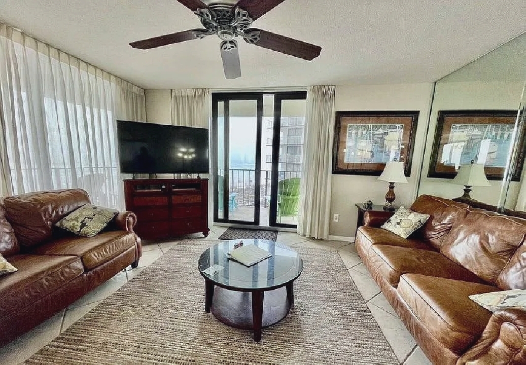 Bright coastal-style interiors, a spacious living area, and a fully equipped kitchen create a comfortable setting, while a private balcony provides relaxing Gulf views just steps from the shoreline; guests can enjoy a beachfront pool, hot tub, fitness center, and easy access to nearby restaurants, shops, and local attractions, making it an inviting and convenient retreat for couples or small families seeking a relaxing Panama City Beach getaway.