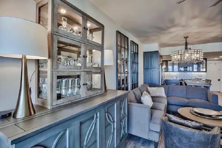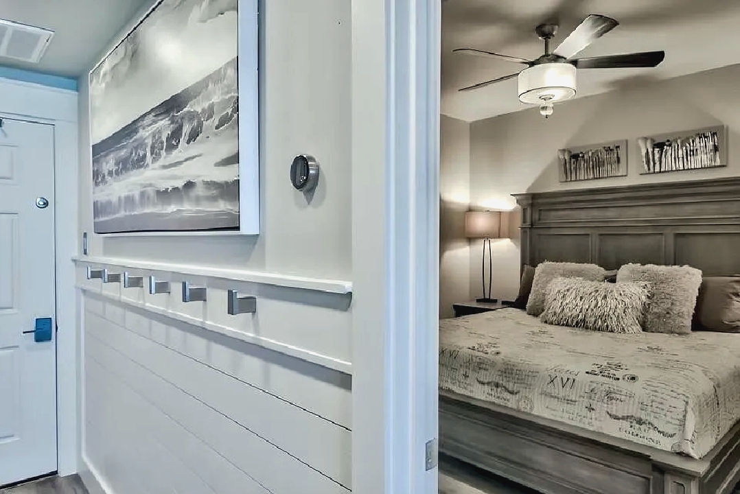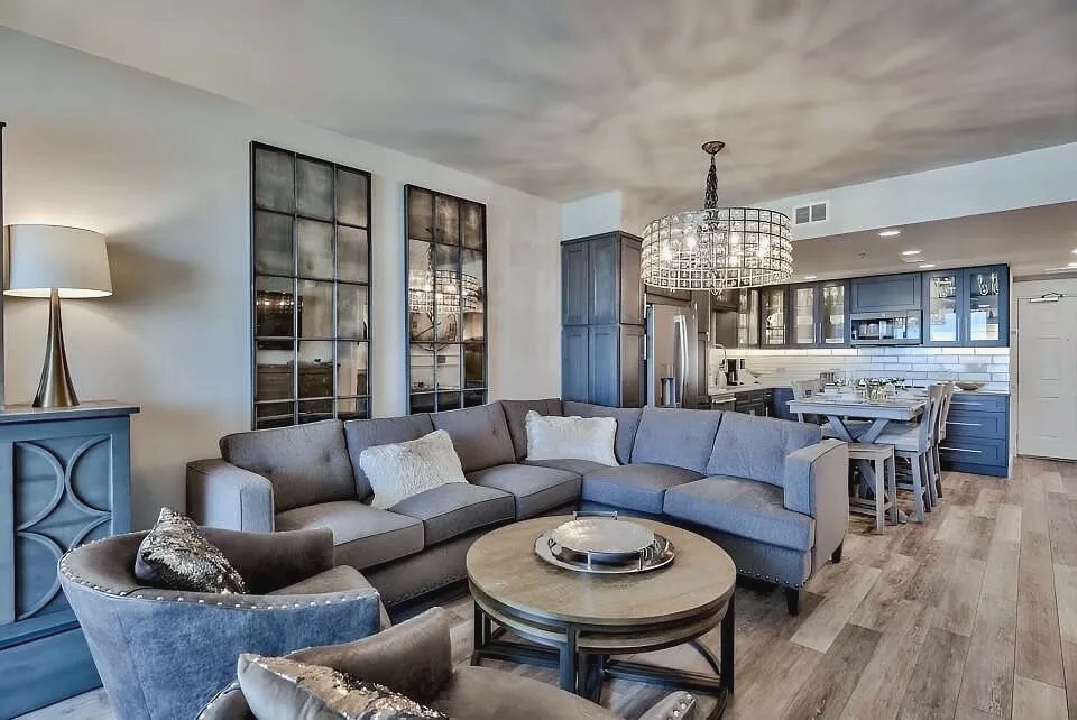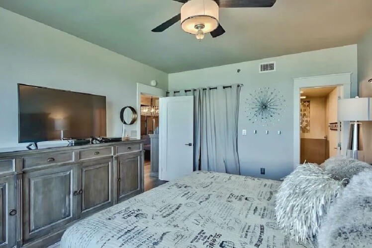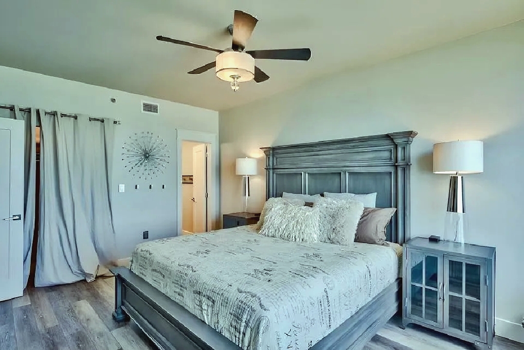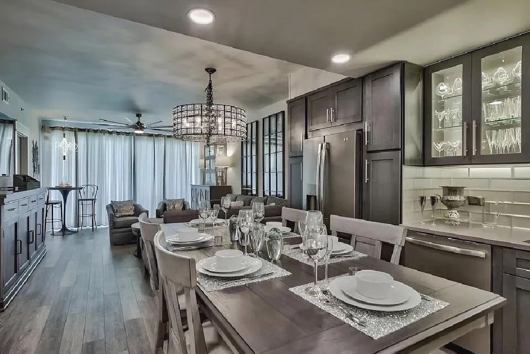 An open living space with comfortable furnishings, a fully equipped kitchen, and a private balcony that frames sweeping Gulf views creates a peaceful coastal atmosphere ideal for unwinding; guests can enjoy modern amenities along with immediate access to white sand beaches, nearby dining, shops, and local attractions, making it a convenient and inviting retreat for couples or small families seeking a serene Miramar Beach getaway.