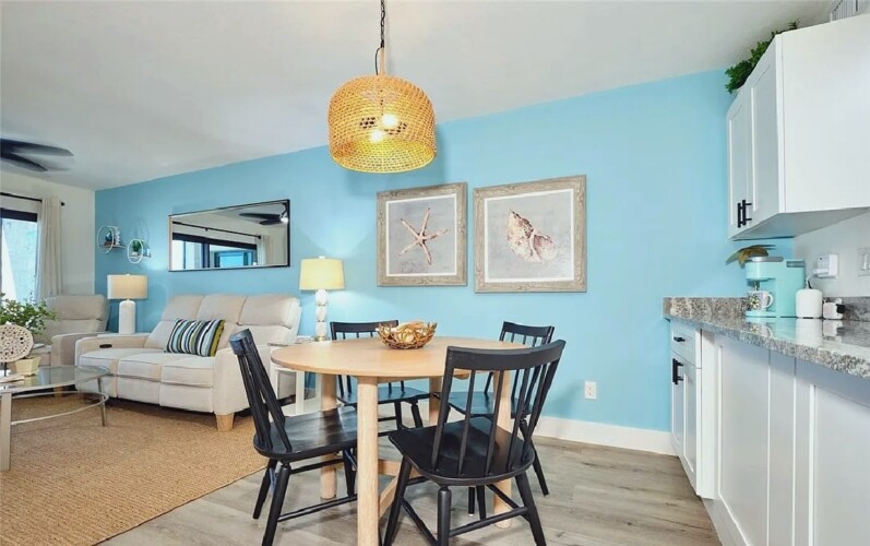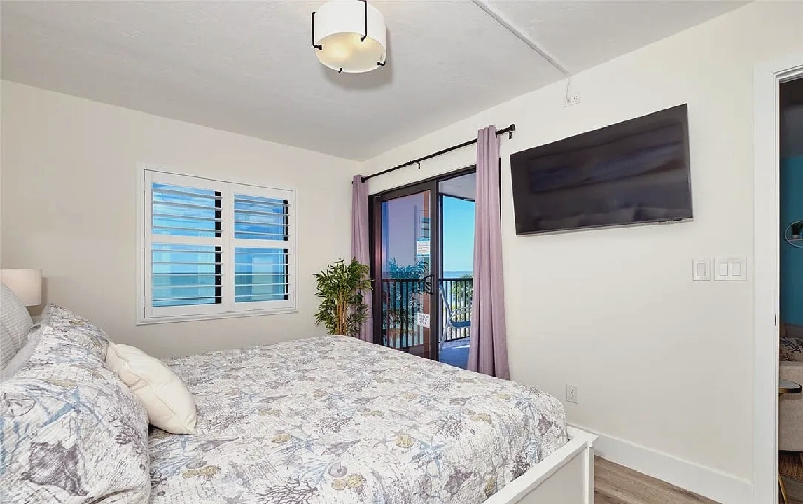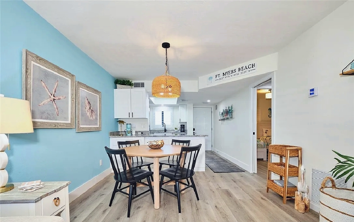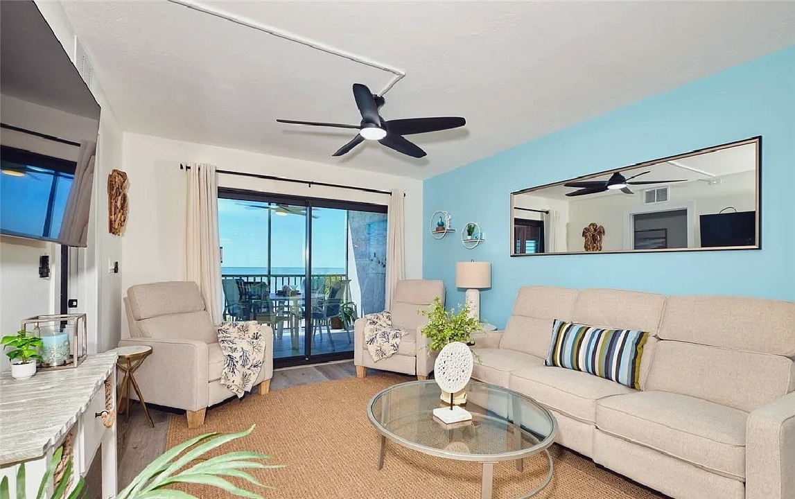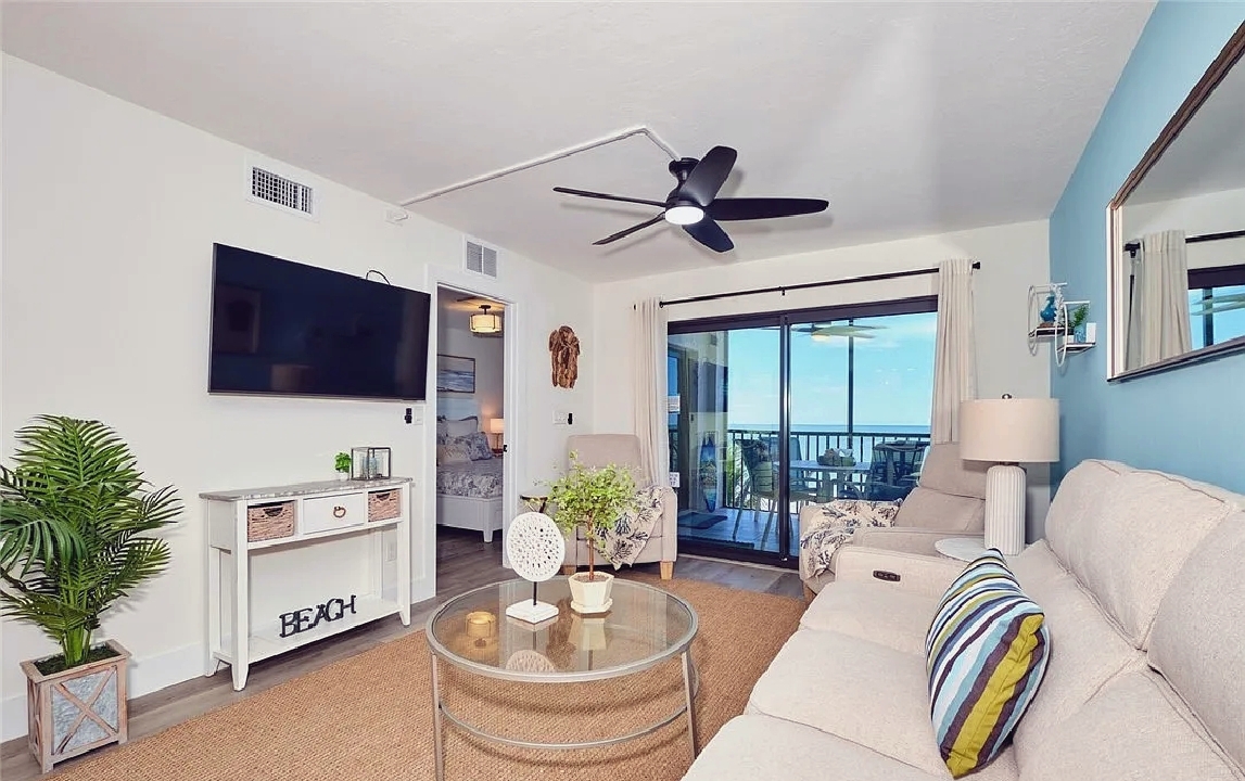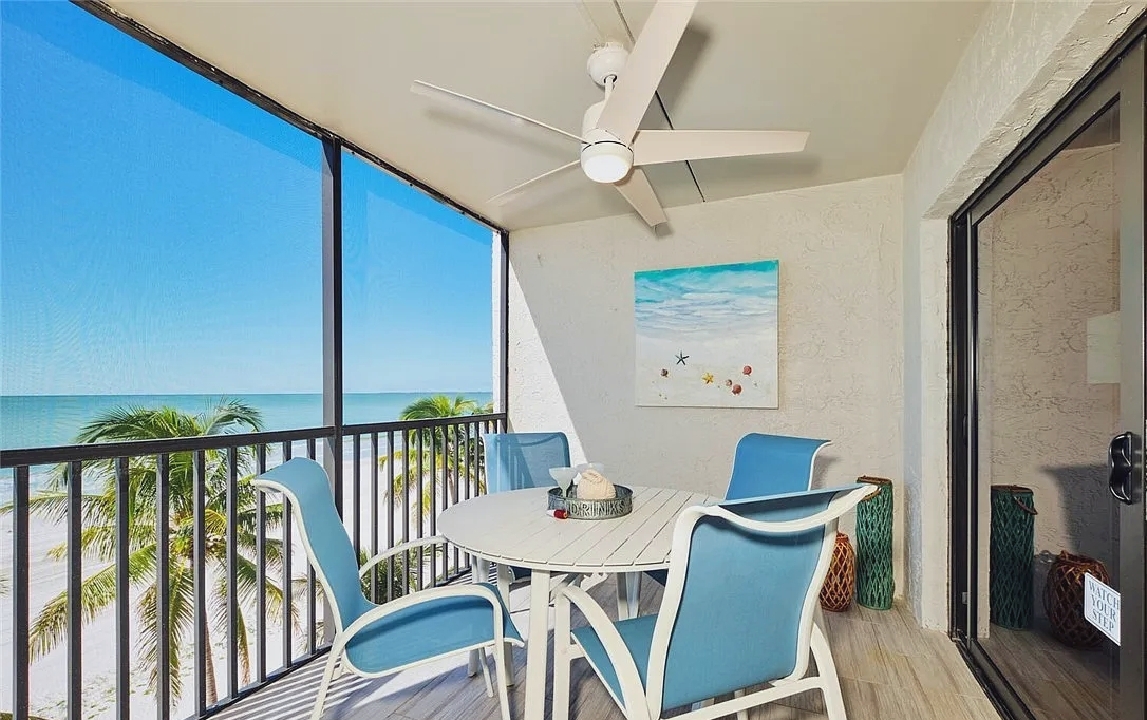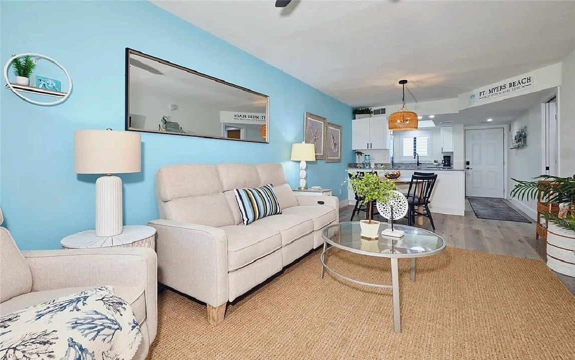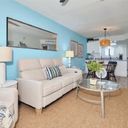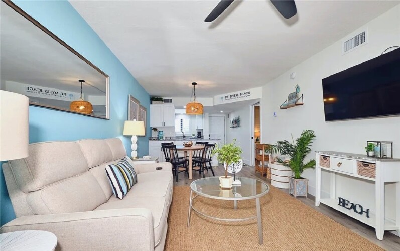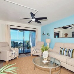 Panoramic Gulf views, a private balcony for enjoying colorful sunsets, and bright open living areas create a peaceful coastal setting ideal for unwinding; guests can take advantage of a modern kitchen, comfortable furnishings, and quick access to nearby dining, shops, and beach activities, making it a convenient and memorable retreat for couples or small families seeking a relaxing stay along Fort Myers Beach.
