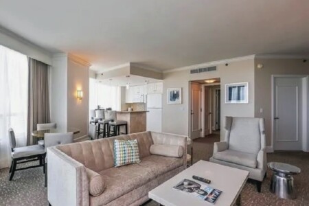 Bright open living and dining areas with comfortable furnishings, a fully equipped kitchen, and large windows create a relaxed coastal atmosphere, while a private balcony offers a pleasant spot to enjoy ocean breezes and water views; guests can enjoy well-proportioned bedrooms, easy beach access, and a prime Miami Beach location close to dining, shopping, and local attractions, making it a comfortable and convenient retreat for a memorable seaside stay.