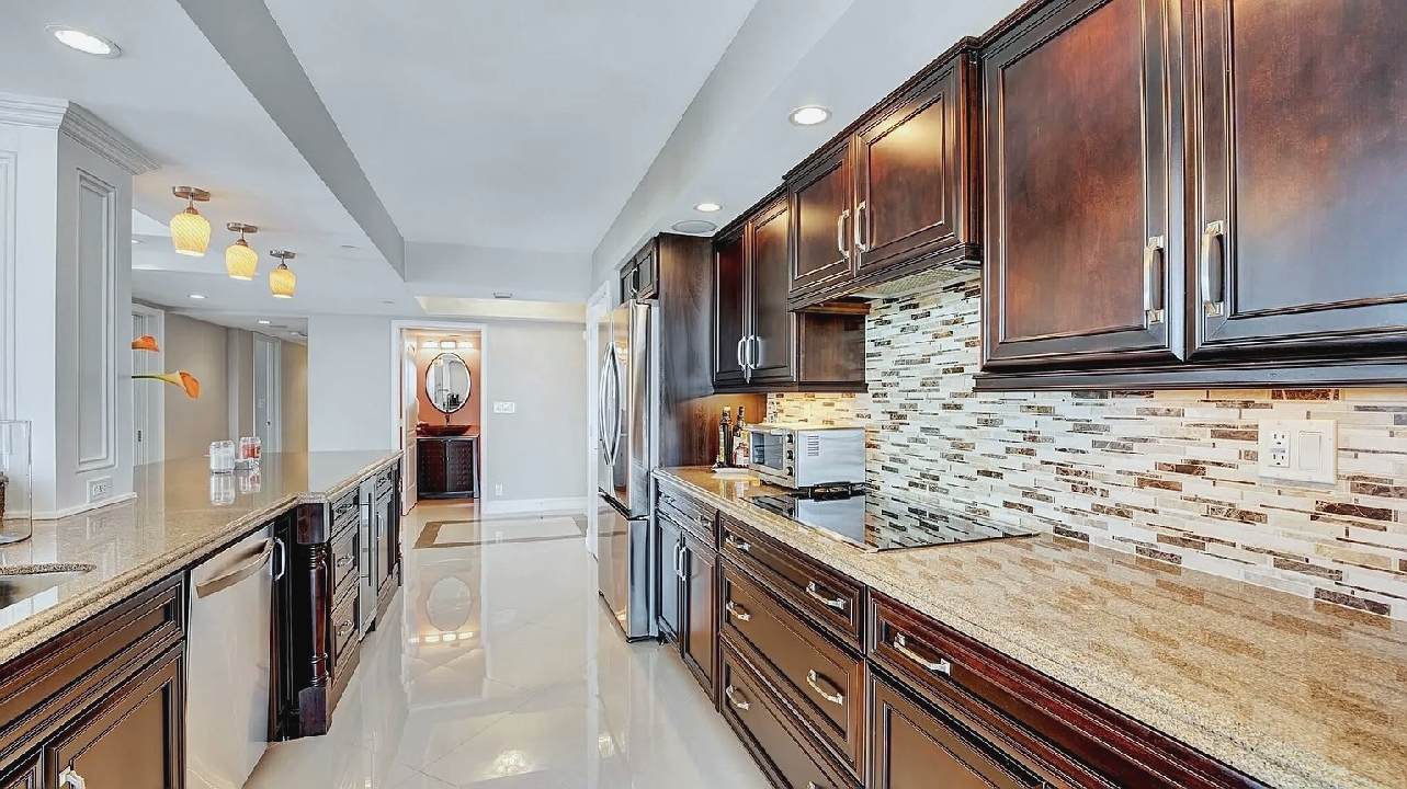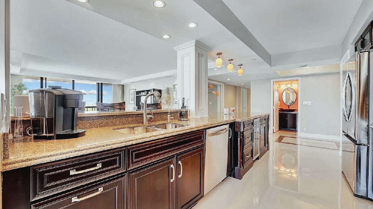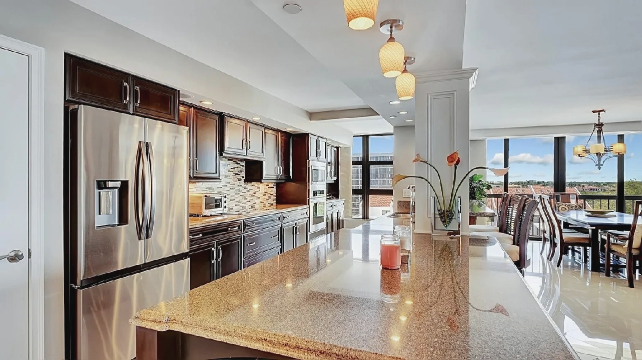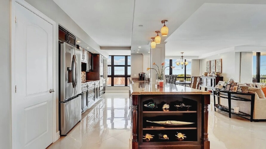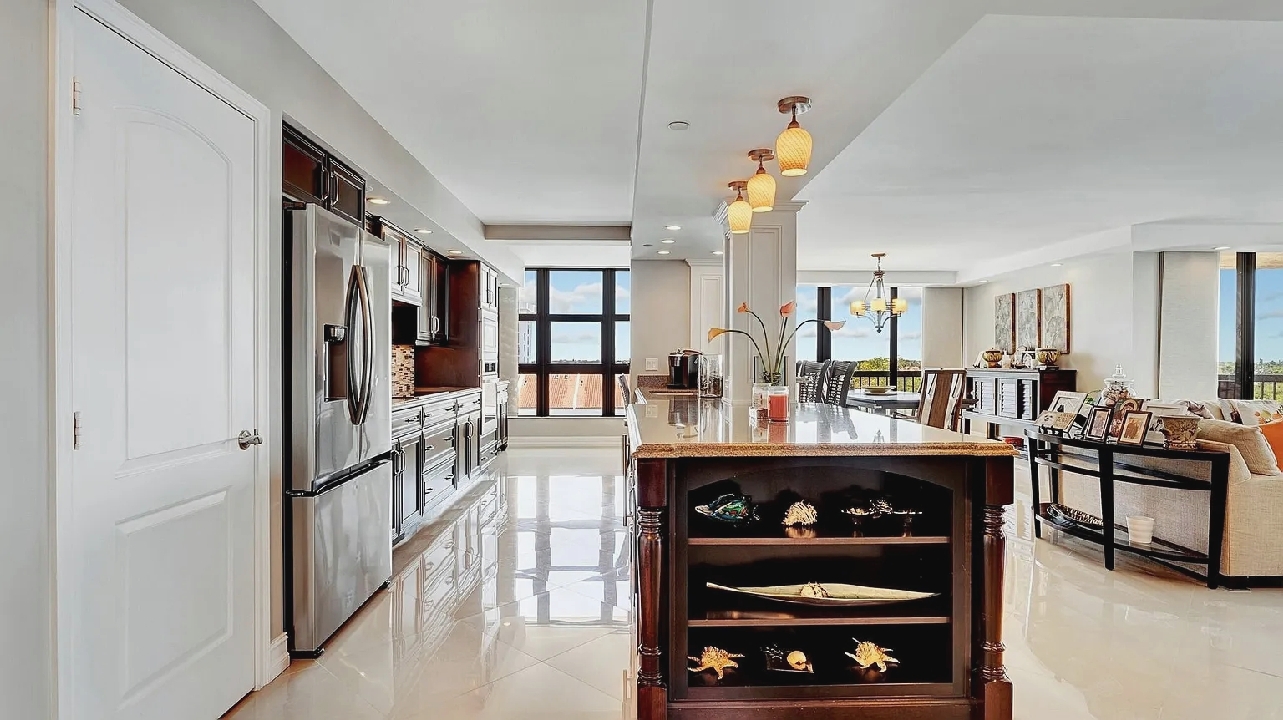 Bright open living areas with comfortable furnishings, a modern well-equipped kitchen, and a private balcony showcasing wide ocean views create a relaxing beachfront setting suited for quiet mornings or sunset gatherings; guests can enjoy amenities such as a heated pool, fitness center, and direct beach access, along with convenient proximity to nearby cafes, restaurants, shops, and local attractions, making it an inviting retreat for couples, families, or small groups seeking a refined coastal escape in Highland Beach.