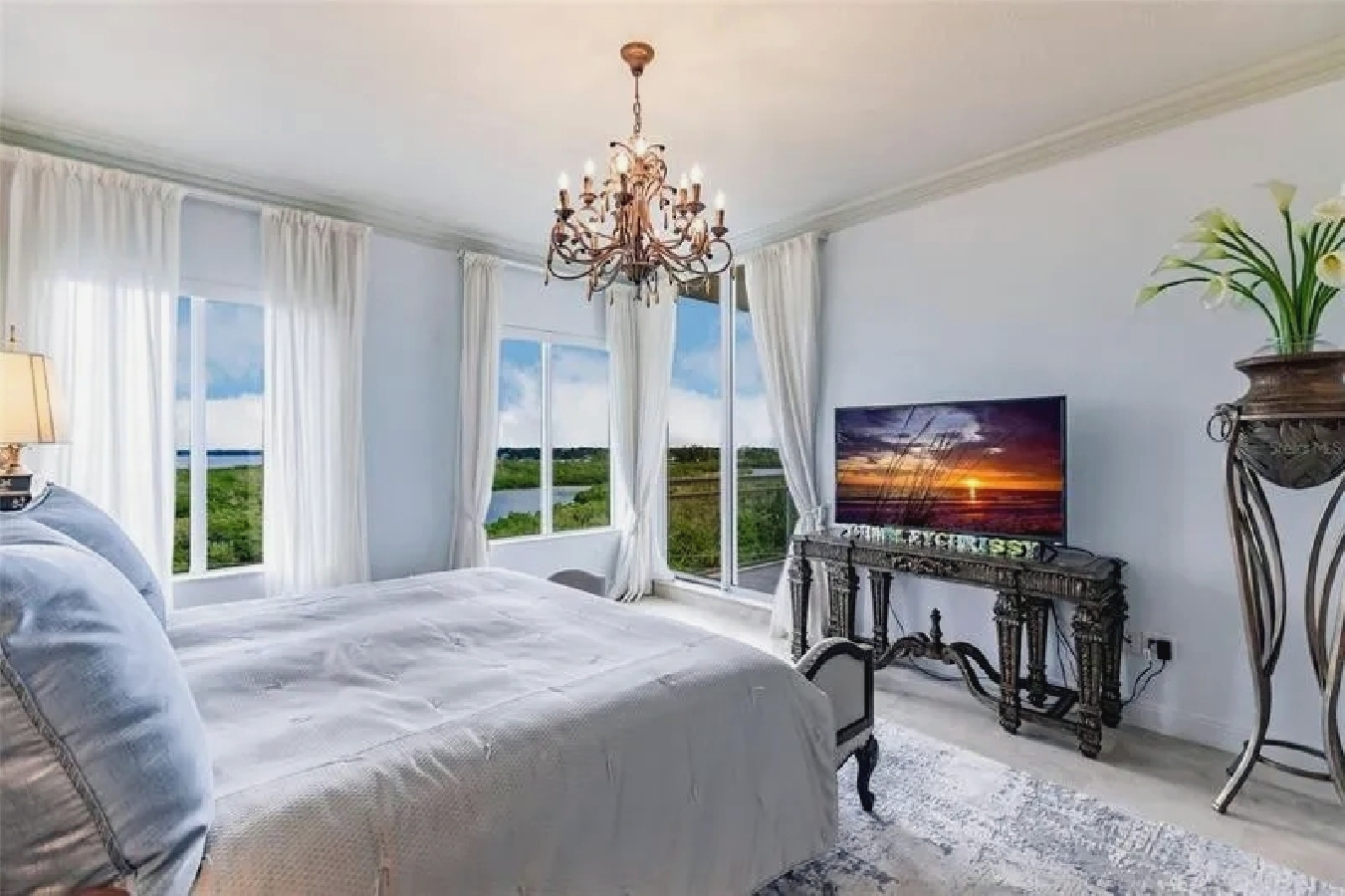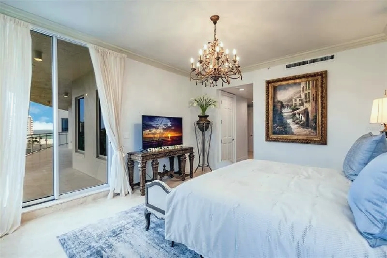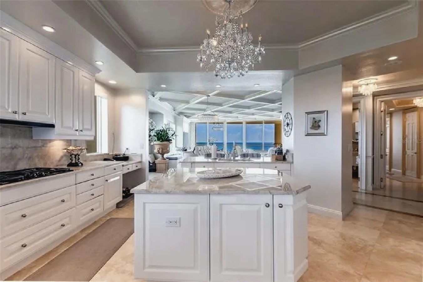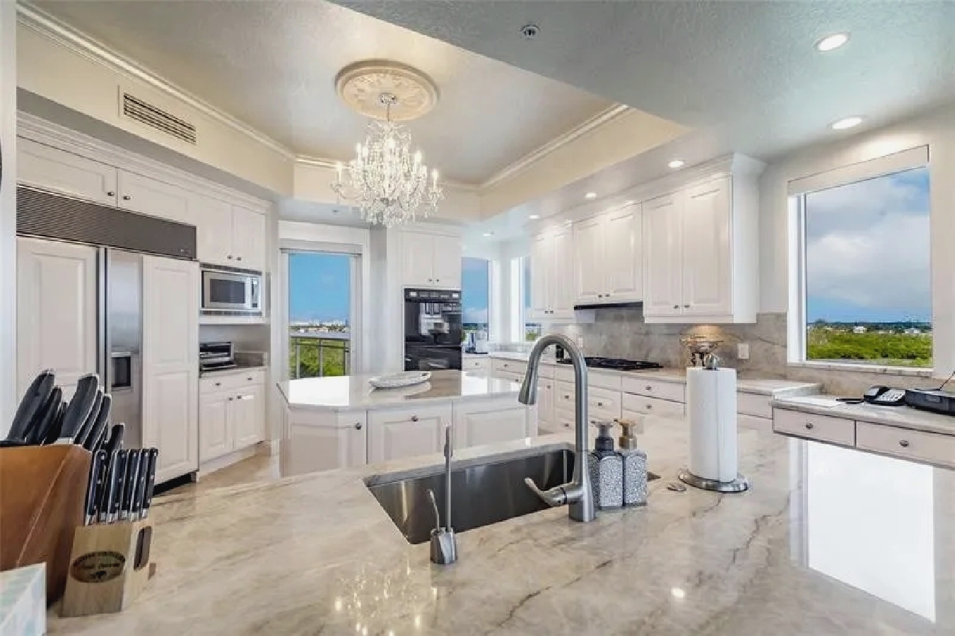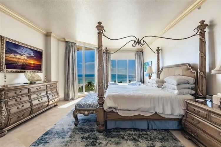 This expansive three-bedroom luxury apartment offers refined coastal living with spacious open-concept interiors, marble and travertine flooring, and sophisticated designer finishes throughout. Multiple living areas provide ample room for relaxation and entertaining, while the gourmet kitchen features premium appliances and stone countertops for an elevated culinary experience. The impressive primary suite includes a spa-inspired bathroom and a generous walk-in closet, complemented by high ceilings, crown molding, and smart home technology for modern comfort. Additional highlights include an in-unit elevator, wet bar, and energy-efficient windows. Perfect for guests seeking a stylish, comfortable, and luxurious coastal retreat in Sarasota.