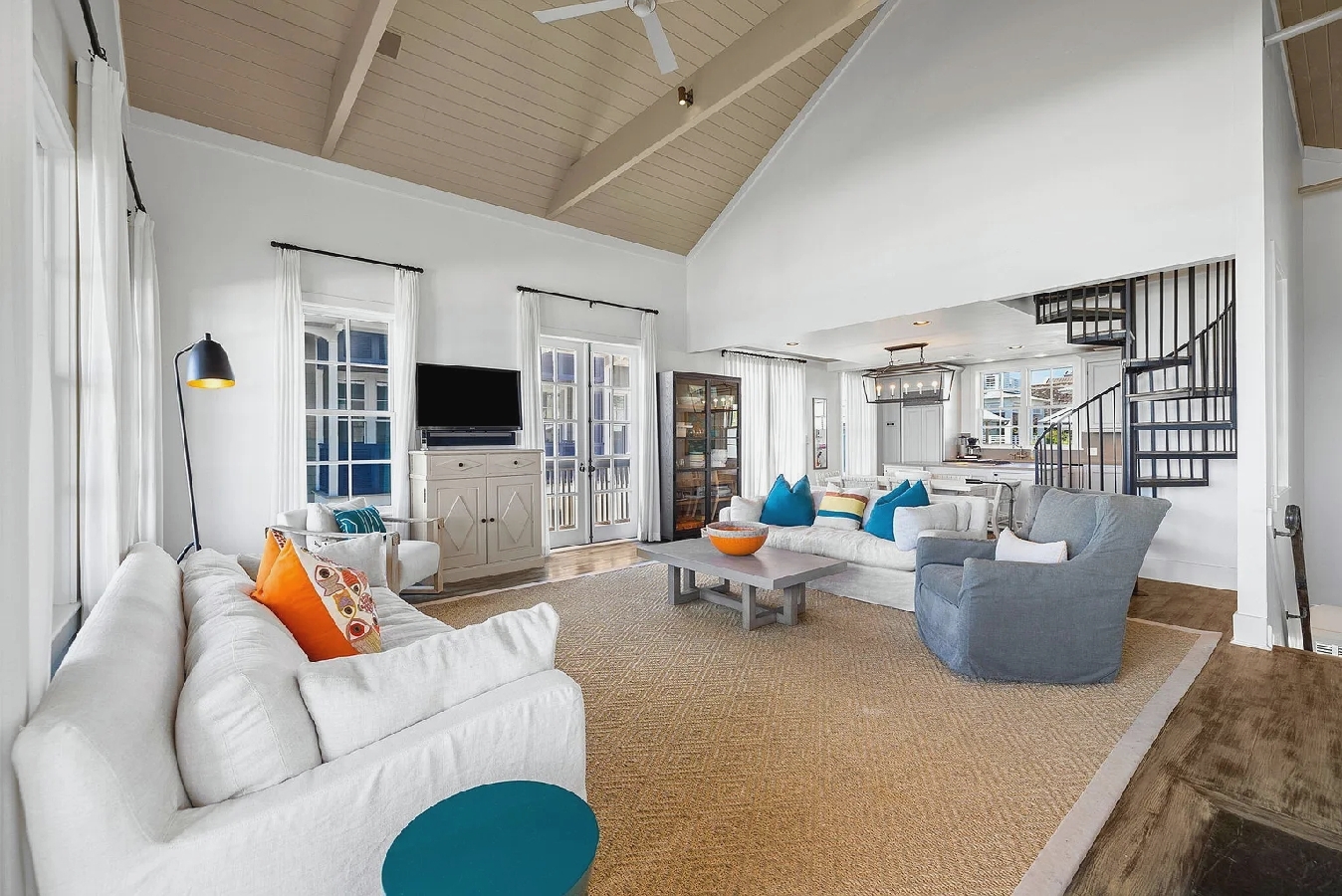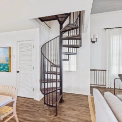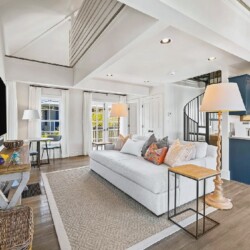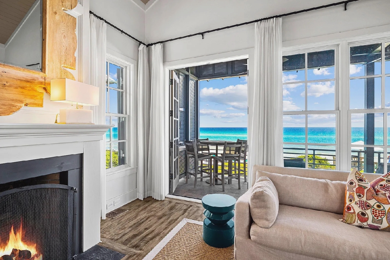 Iconic four-bedroom, four-bath coastal retreat offering direct beach boardwalk access, a serene private courtyard, and a charming carriage house. The home features elegant interiors, spacious living areas, and balconies that capture stunning Gulf views, complemented by access to a community pool and tennis courts for relaxed seaside living.