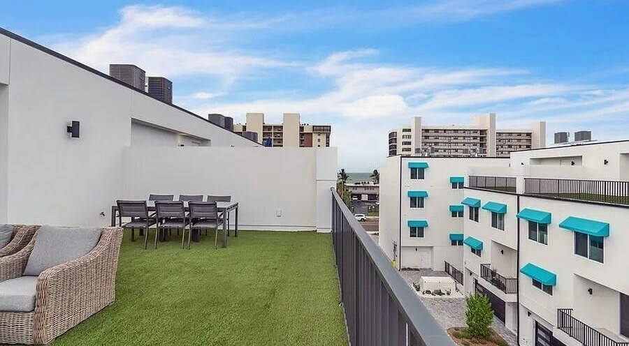 This stunning 5-bedroom, 4-bath luxury townhome offers modern coastal living just steps from the beach. Designed with style and comfort in mind, it features open-concept living areas, elegant finishes, and abundant natural light. The spacious rooftop deck provides breathtaking views and the perfect spot for entertaining or relaxing by the sunset. With private beach access and contemporary amenities, this home embodies the ultimate Florida beachfront lifestyle.