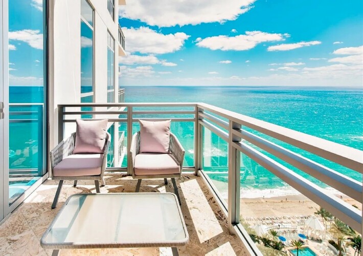 Located along the Hollywood Beach oceanfront corridor near the Hallandale border, the residence offers convenient access to waterfront dining, Gulfstream Park, Aventura Mall, and Fort Lauderdale–Hollywood International Airport.