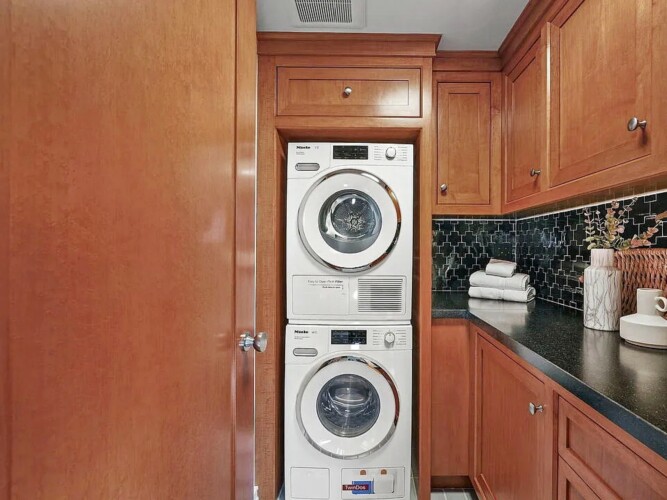 The chef’s kitchen is appointed with top-of-the-line Gaggenau appliances and refined finishes, blending performance and sophistication. Two generously proportioned bedrooms and two full bathrooms provide privacy and comfort, making the residence ideal for both short visits and extended stays.