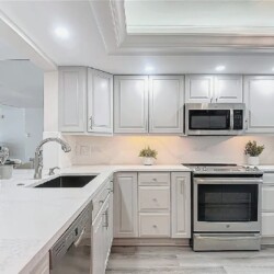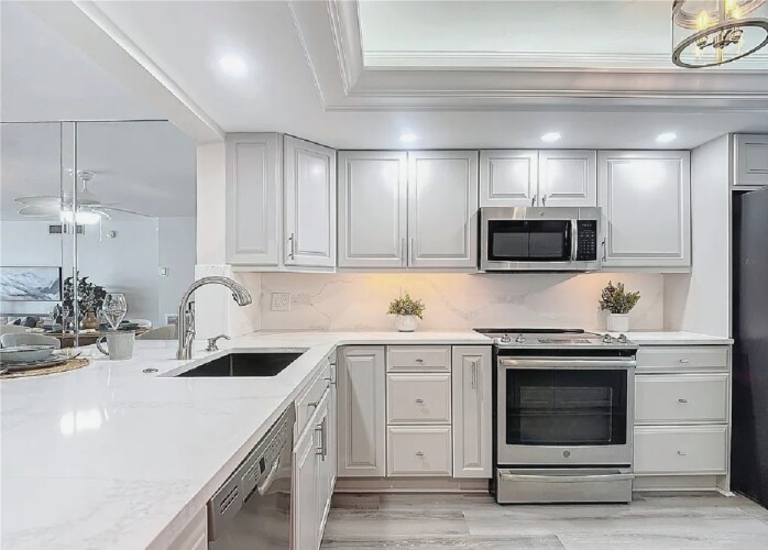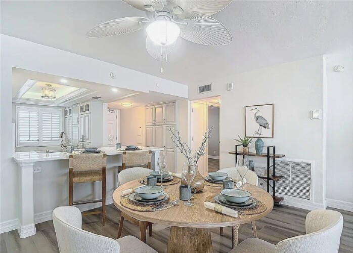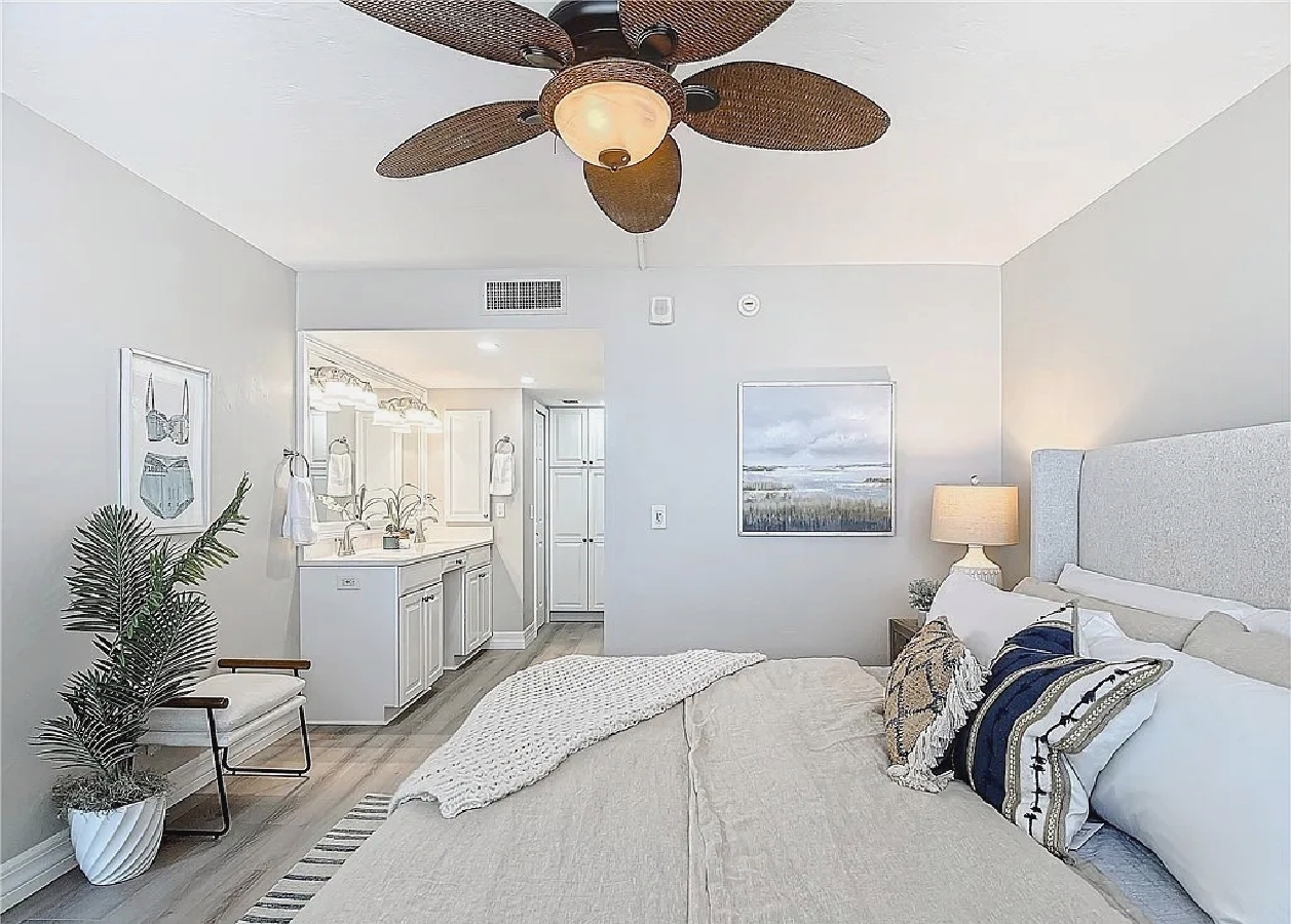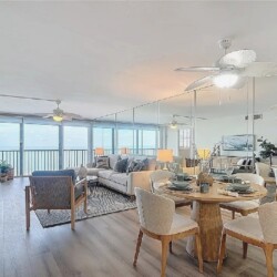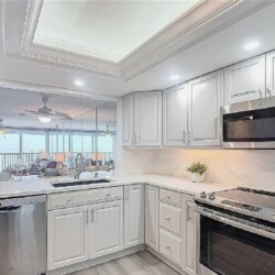 This luxurious 2-bedroom, 2-bath residence features a split floor plan for added privacy and an expansive open-concept layout with luxury wood-plank tile floors, a brand-new kitchen with quartz countertops, stainless steel appliances, and custom cabinetry. The spacious living area opens to breathtaking Gulf views stretching from Sanibel to Naples, perfect for taking in stunning sunsets. Residents have access to a resort-style beachfront pool, modern clubhouse, tennis courts, and barbecue area, all surrounded by lush tropical landscaping. Ideally located near shopping, dining, and entertainment, this condo offers the perfect combination of coastal elegance and convenience.