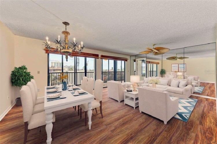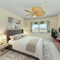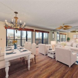 Bright open living areas with comfortable furnishings, a fully equipped kitchen, and wide windows that frame calming bay views create a peaceful waterfront atmosphere; guests can enjoy generous interior space along with quick access to downtown Sarasota’s dining, cultural attractions, and shoreline paths, making it an inviting and convenient retreat for a relaxing short-term stay.