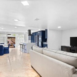 Bright open living areas with comfortable furnishings, a fully equipped kitchen, and a private balcony overlooking the nearby waterways create a calming coastal atmosphere ideal for unwinding; guests can enjoy generous interior space along with quick access to local dining, shops, and beaches, making it a convenient and inviting spot for couples or small families seeking a relaxed Hallandale getaway.