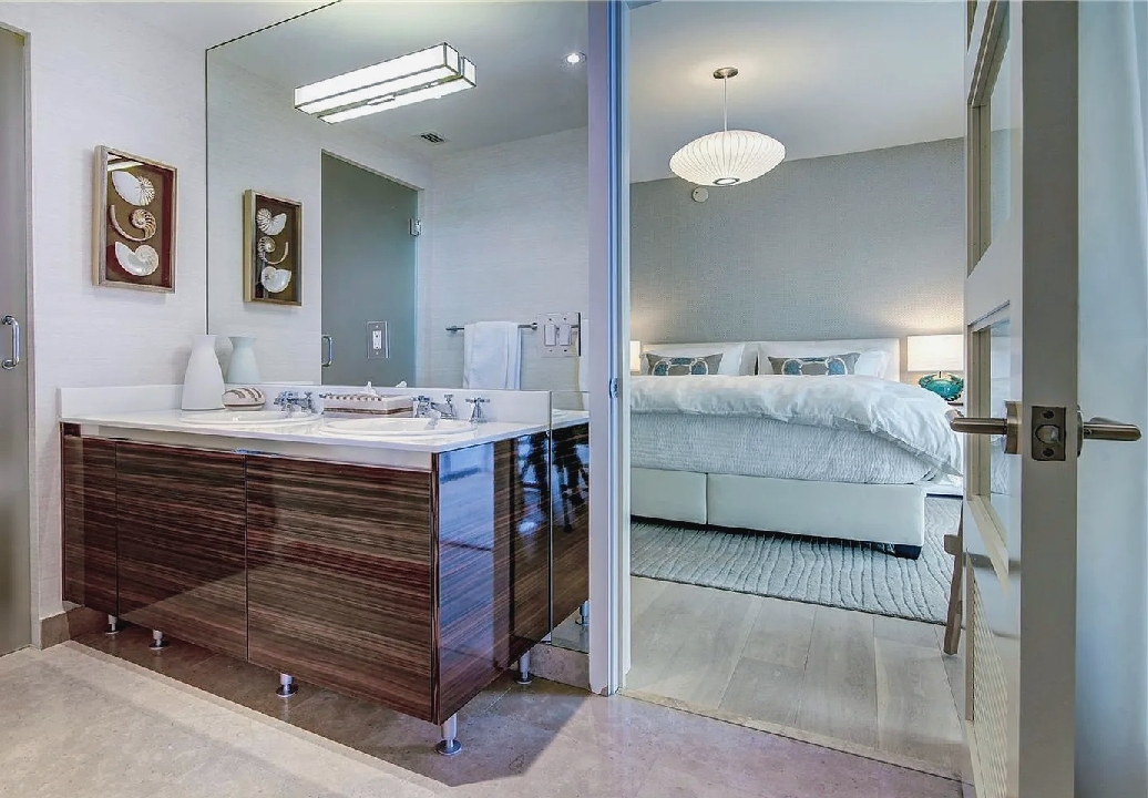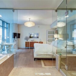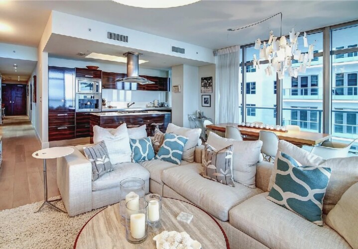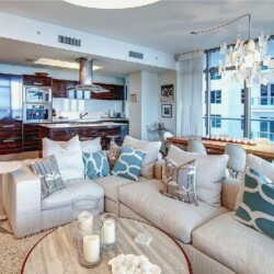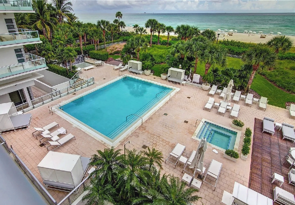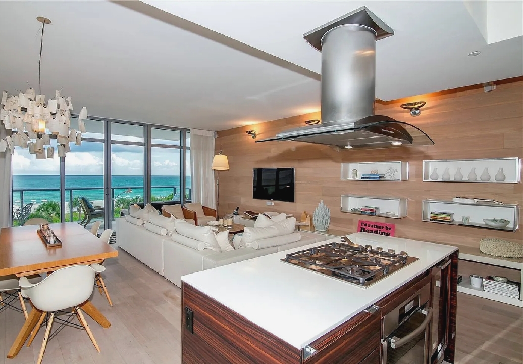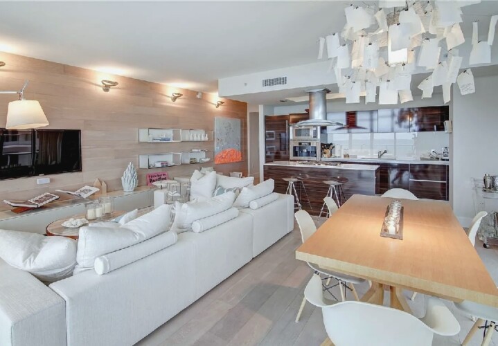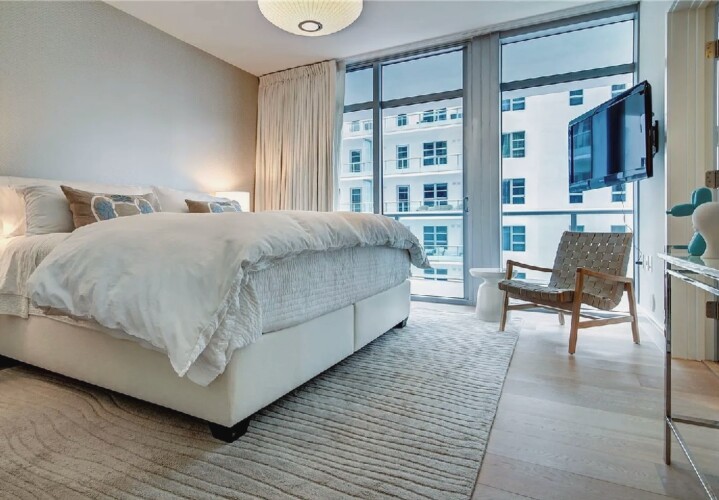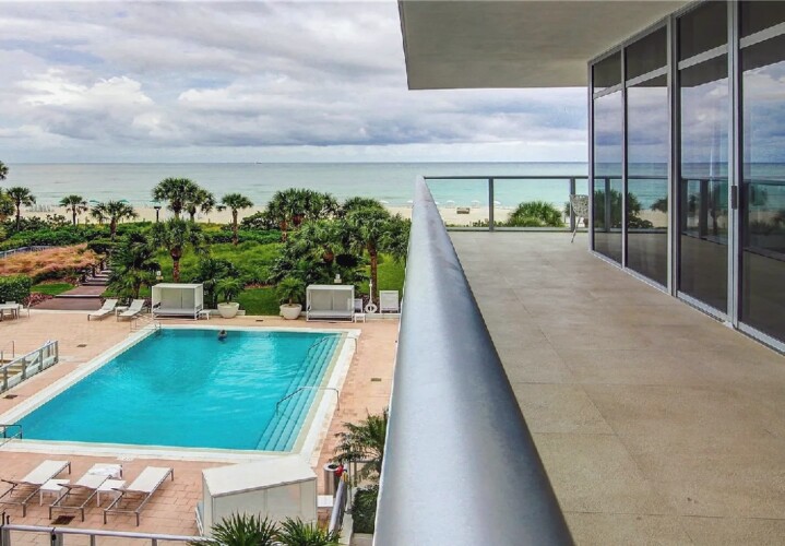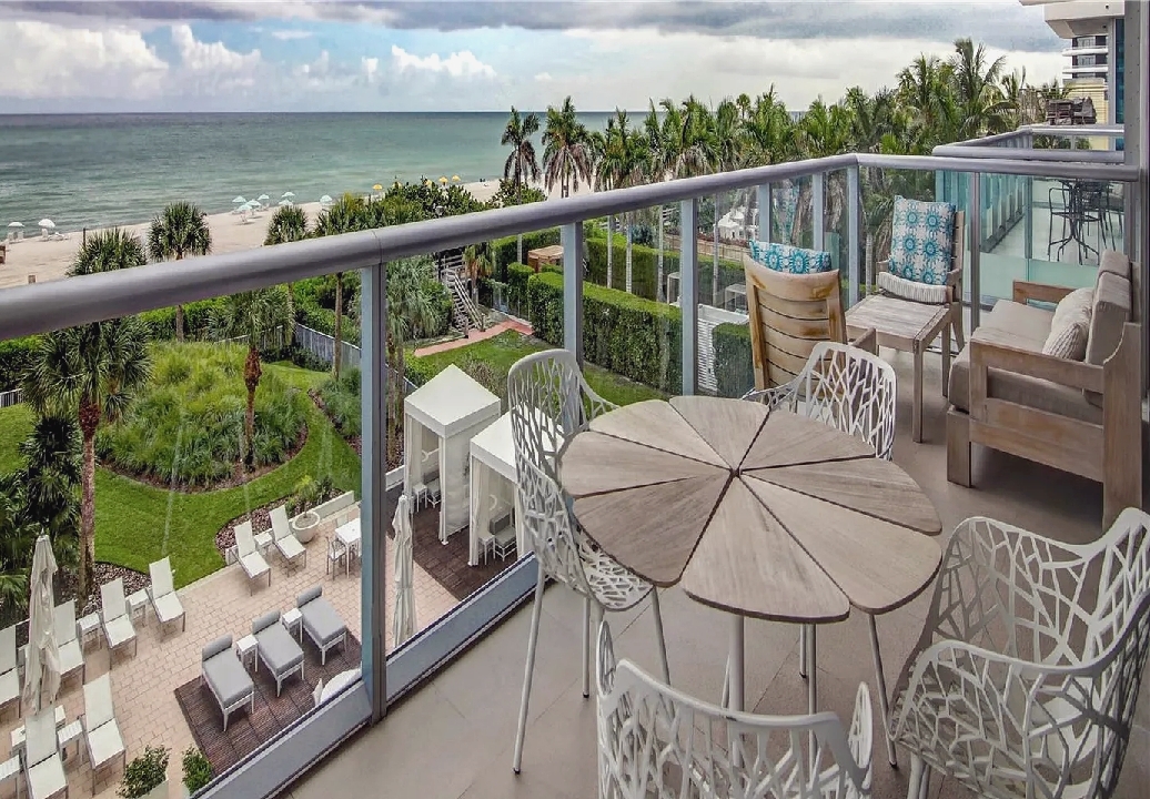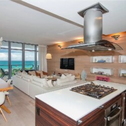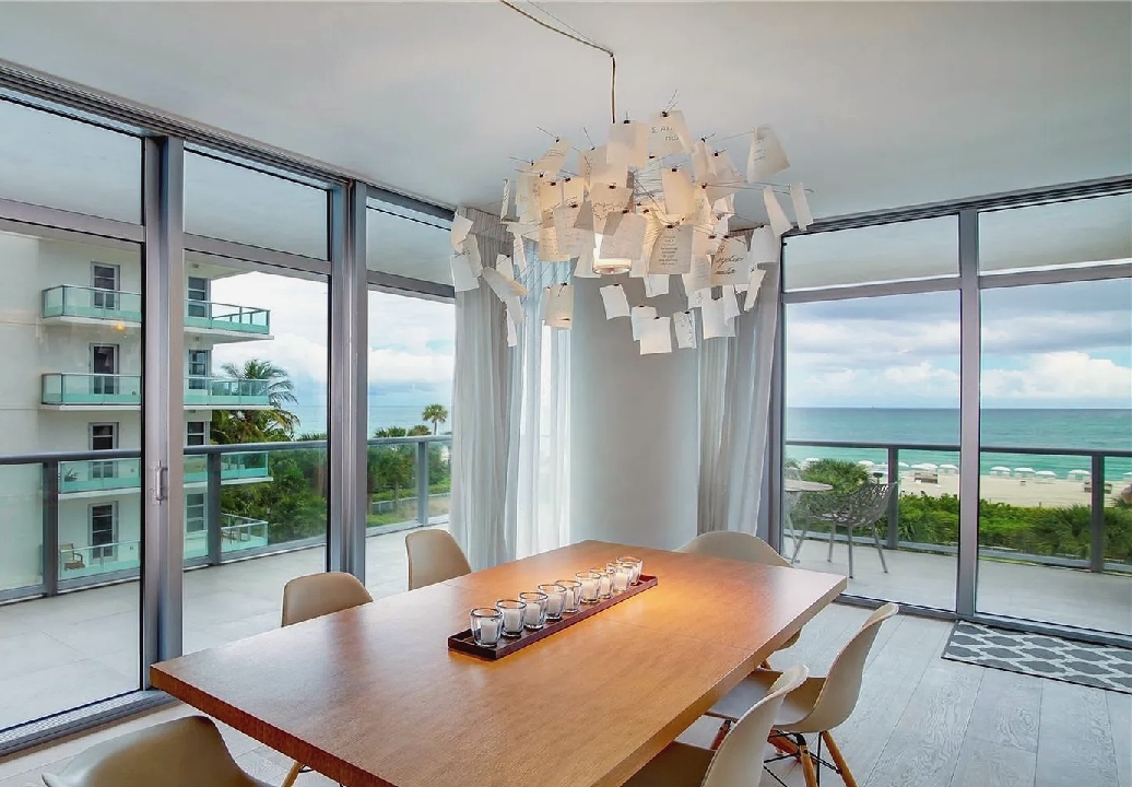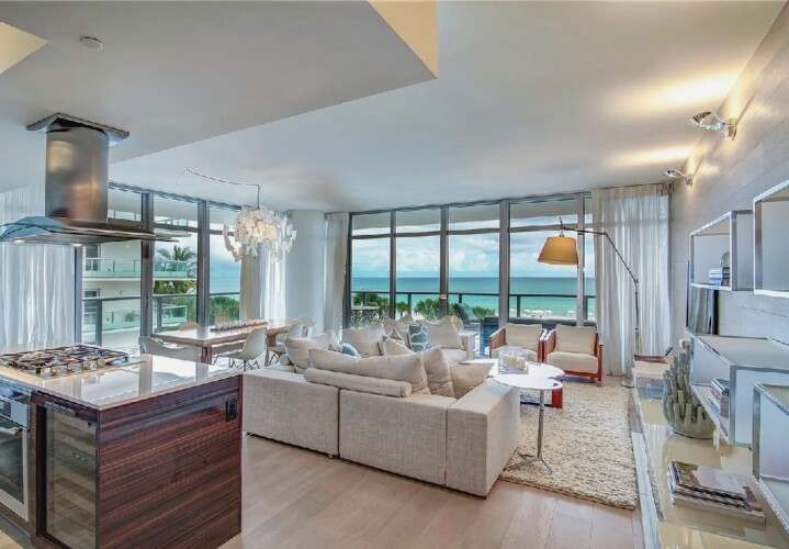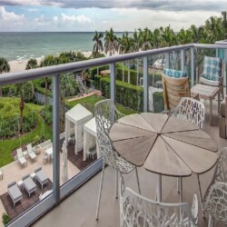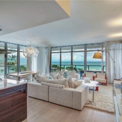Direct ocean views and expansive windows set a serene tone throughout this furnished beachfront residence, featuring clean-lined interiors, natural-toned wood flooring, and a spacious living area that flows seamlessly to an oversized wraparound balcony stretching more than 780 square feet with sweeping coastal vistas; all three bedrooms enjoy calming water views, while guests can take advantage of beach and pool service, a fitness center, private wine storage, and attentive staff, all with the boardwalk just outside and easy access to renowned dining and nightlife in the surrounding neighborhood.