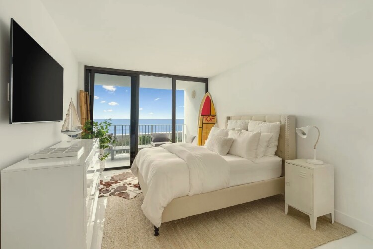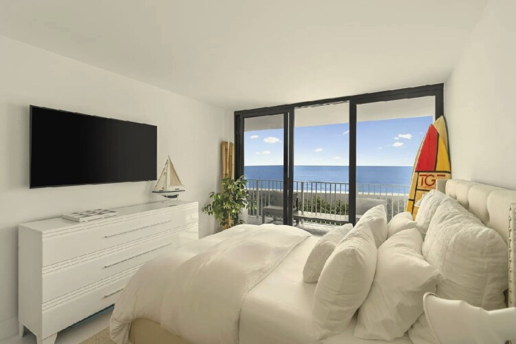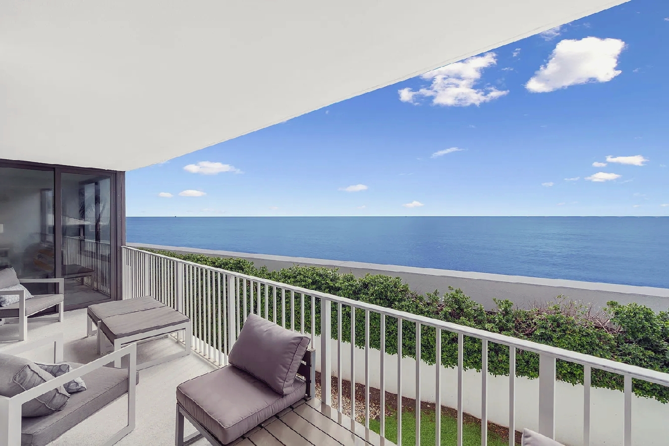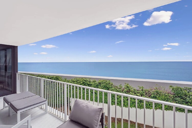 This inviting two-bedroom oceanfront apartment offers a serene coastal retreat with a private balcony showcasing sweeping views of the Atlantic Ocean. The bright open-concept living area features modern furnishings, elegant coastal décor, and a fully equipped kitchen designed for comfort and convenience. Guests can enjoy direct access to the beach, relax by the resort-style pool, and explore nearby dining, shopping, and leisure destinations. Ideal for couples or small families seeking a peaceful, stylish, and memorable oceanfront getaway in South Palm Beach.