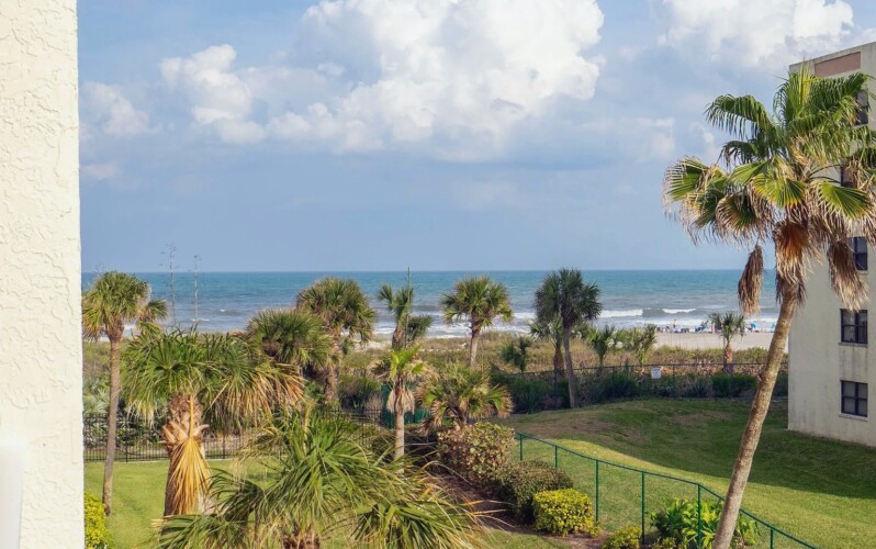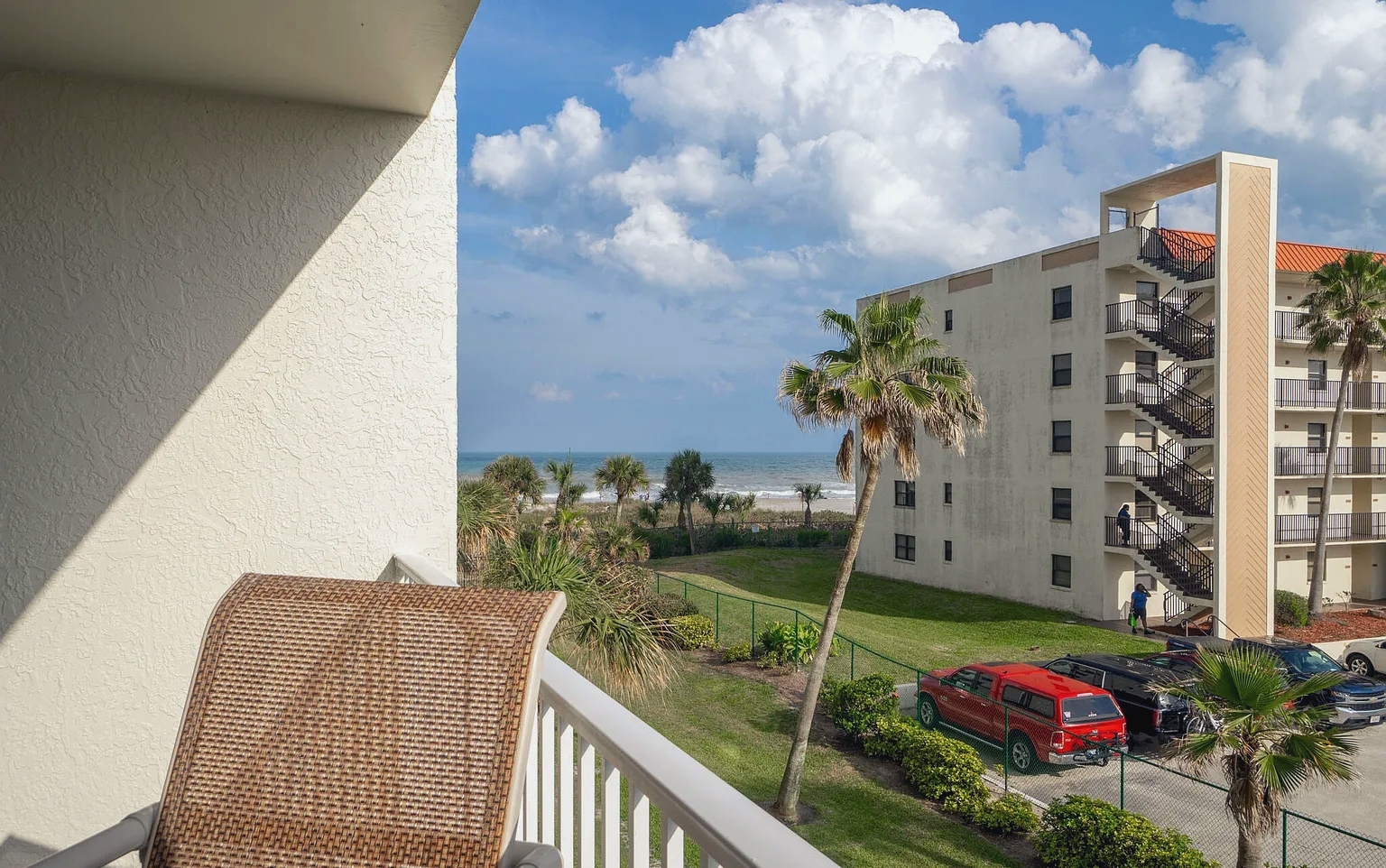 This inviting oceanfront condo offers two bedrooms, two bathrooms, and stunning panoramic views of the Atlantic from its private balcony. The bright, open living space features a fully equipped kitchen, elegant coastal décor, and large windows that frame the sea. Residents and guests can unwind in the heated pool, stay active in the fitness center, or stroll directly onto the beach. Conveniently located near Cocoa Beach Pier, boutique shops, and seaside dining, this home captures the essence of relaxed coastal living.