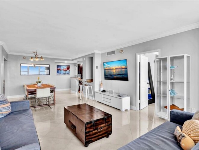 Positioned directly along Fort Lauderdale’s sought-after Galt Ocean Mile, this spacious two-bedroom residence offers open Atlantic views and immediate access to the sand in a well-established beachfront setting.