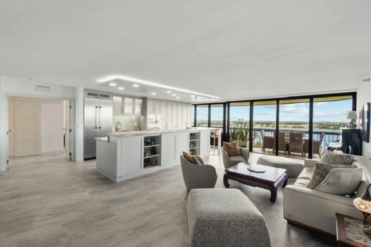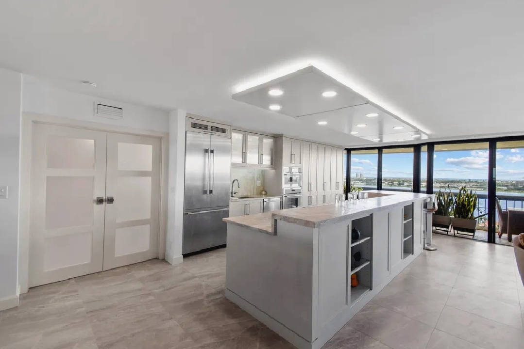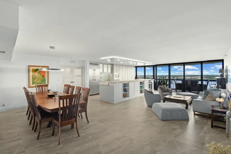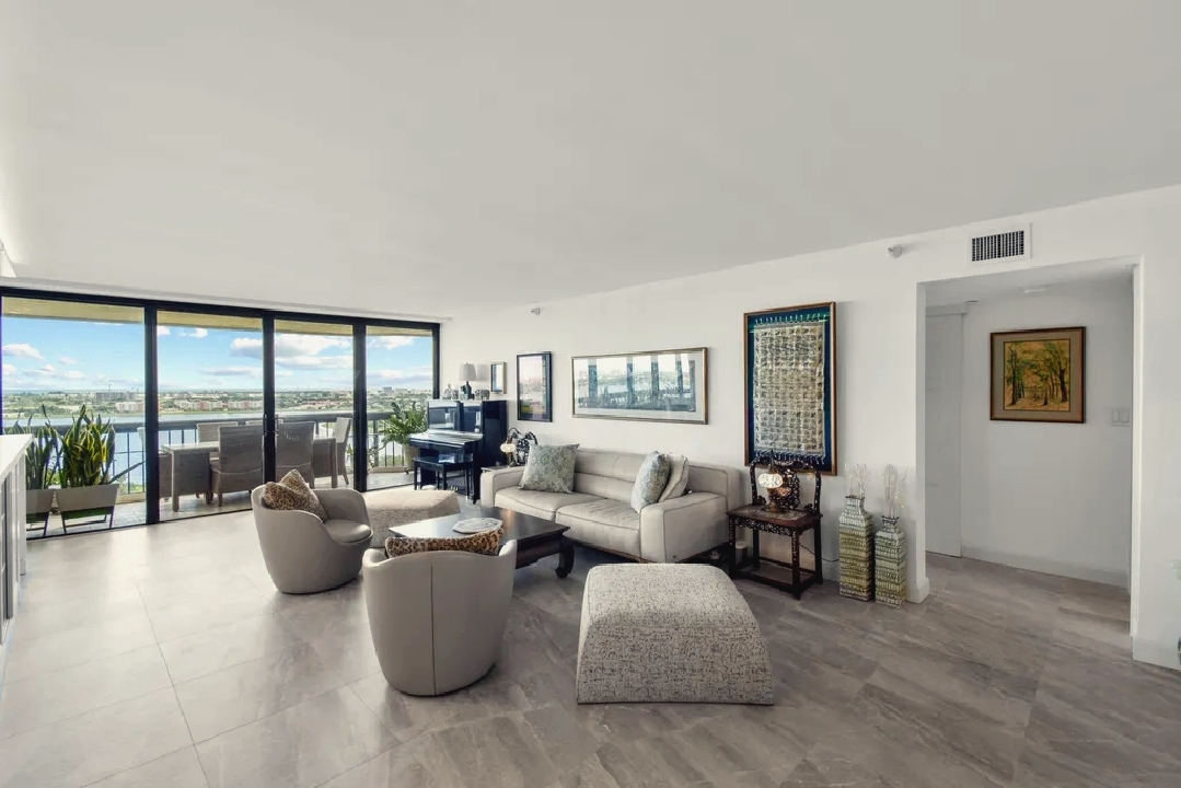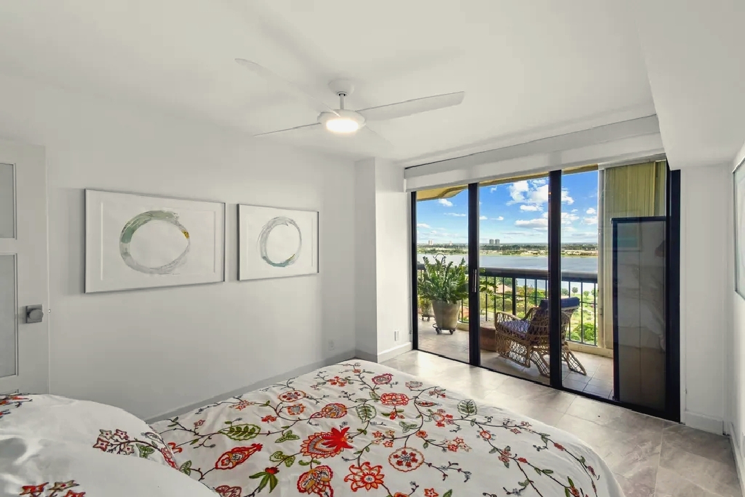 Refined furnishings and bright modern interiors define this spacious two bedroom, two bathroom residence, offering an open living area designed for comfort and everyday ease. Large windows and a private balcony frame sweeping views of the city skyline, nearby golf greens, and the surrounding landscape, creating a calm and elevated atmosphere throughout the home. The bedrooms provide generous space for rest and privacy, while the bathrooms are thoughtfully arranged for convenience. Located close to shopping, dining, parks, and major attractions, the setting supports a relaxed lifestyle with easy access to the best of West Palm Beach.