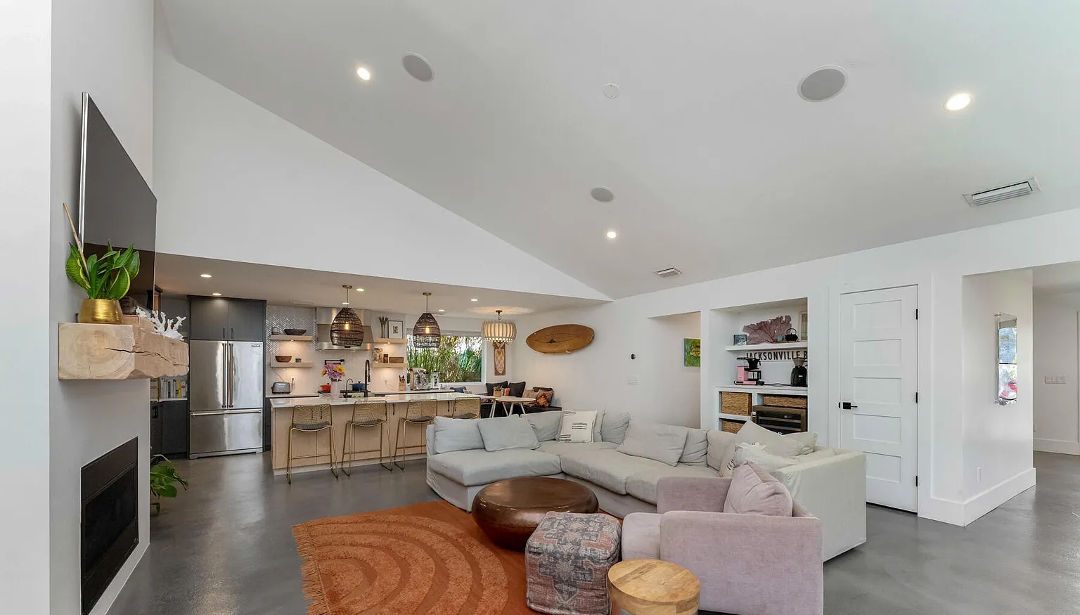Modern open living areas with comfortable furnishings, a fully equipped kitchen, and private outdoor spaces create a relaxing setting ideal for unwinding or gathering with family and friends; guests can enjoy generous bedroom suites along with quick access to nearby beaches, local restaurants, shops, and coastal attractions, making it a convenient and welcoming retreat for a comfortable Jacksonville Beach getaway.