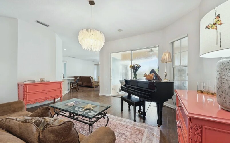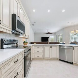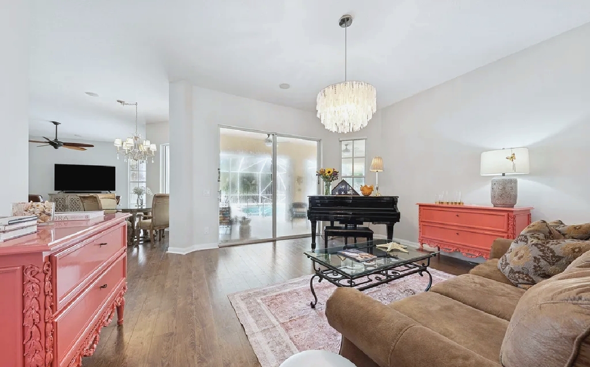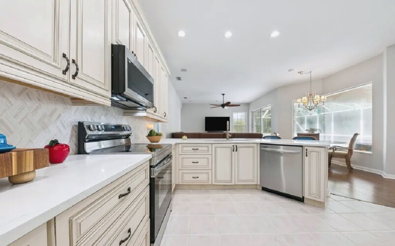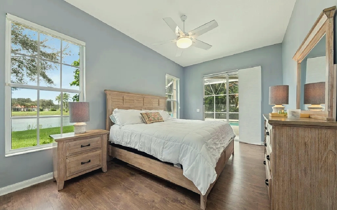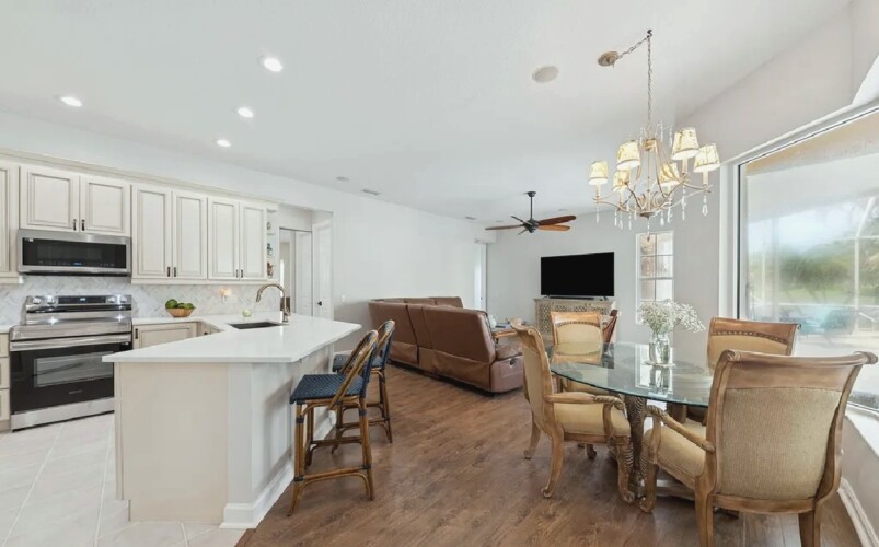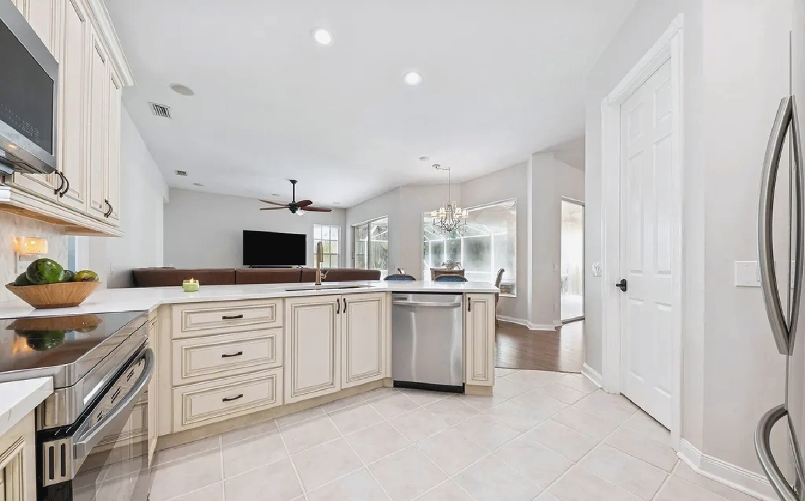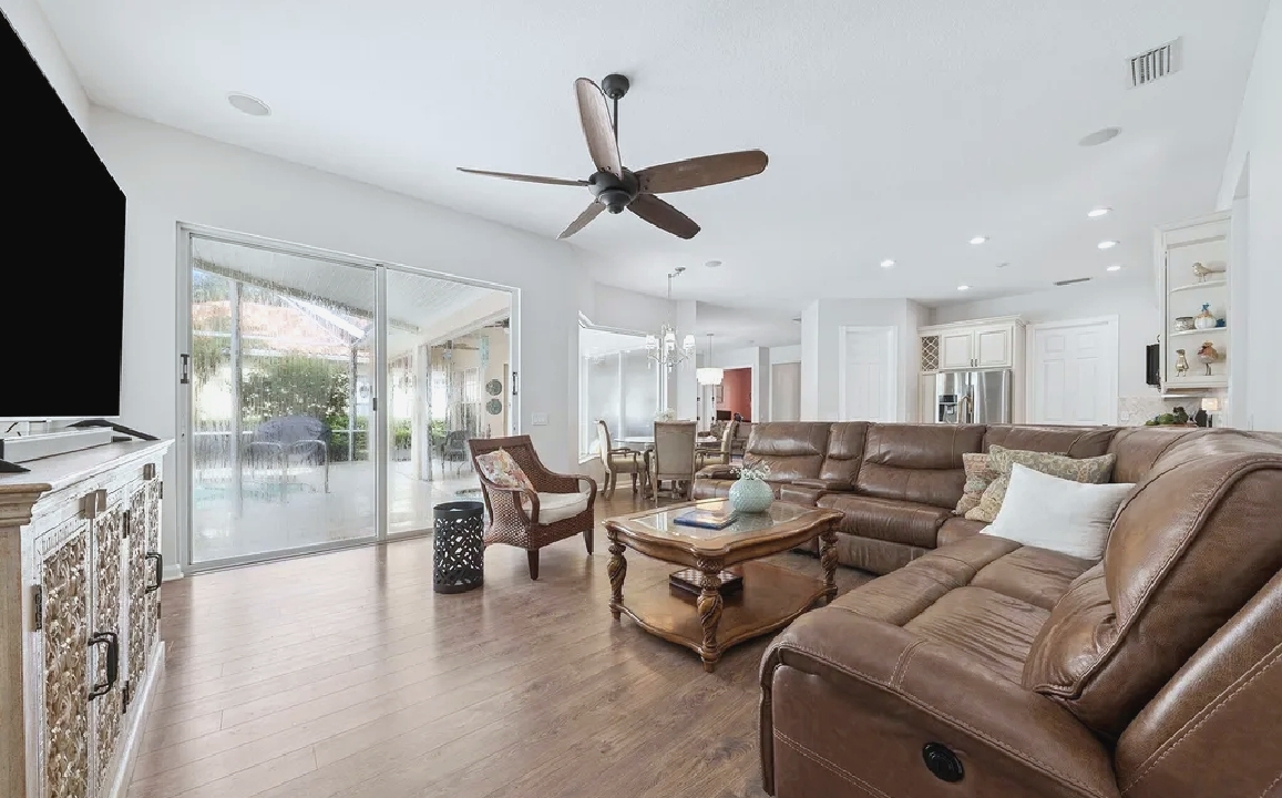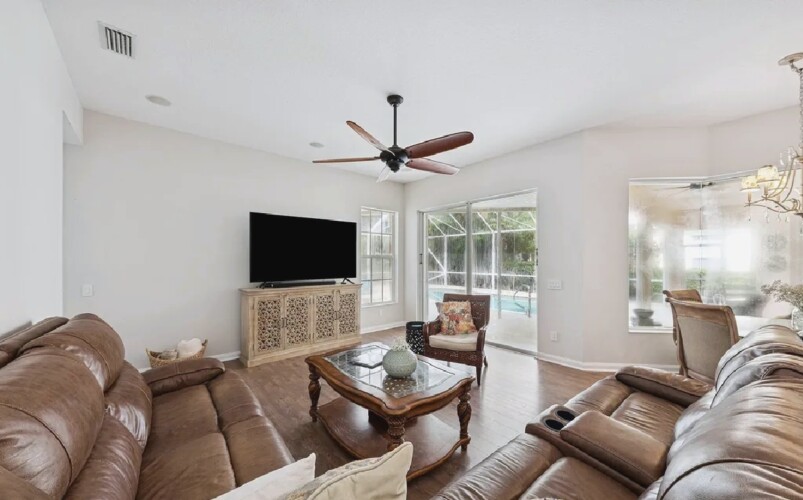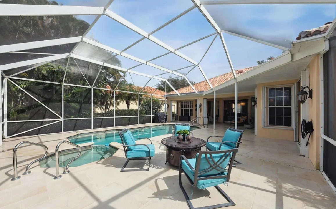 Bright open interiors with comfortable furnishings and a well-designed layout create an inviting atmosphere ideal for families or groups, while a screened outdoor patio and peaceful backyard provide relaxing spaces for enjoying fresh air or casual gatherings; guests can take advantage of the quiet residential setting with convenient access to nearby parks, golf courses, shopping centers, and dining options, making it a balanced and enjoyable retreat that offers both privacy and easy accessibility.
