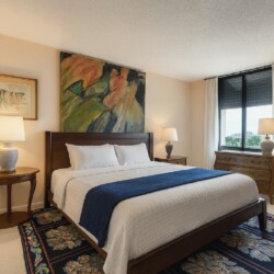 This three bedroom, three bathroom condo offers over 2,300 square feet of living space with two private balconies showcasing lake and golf course views. The residence features a modern kitchen, in-unit washer and dryer, and a bright open layout designed for comfort. Guests can enjoy resort-style amenities including a pool, spa, fitness center, and tennis facilities, all in a convenient West Palm Beach location.