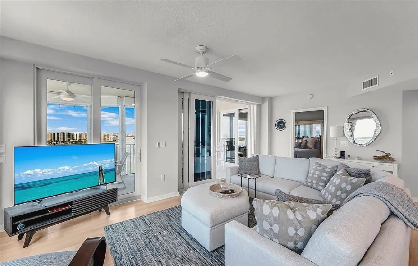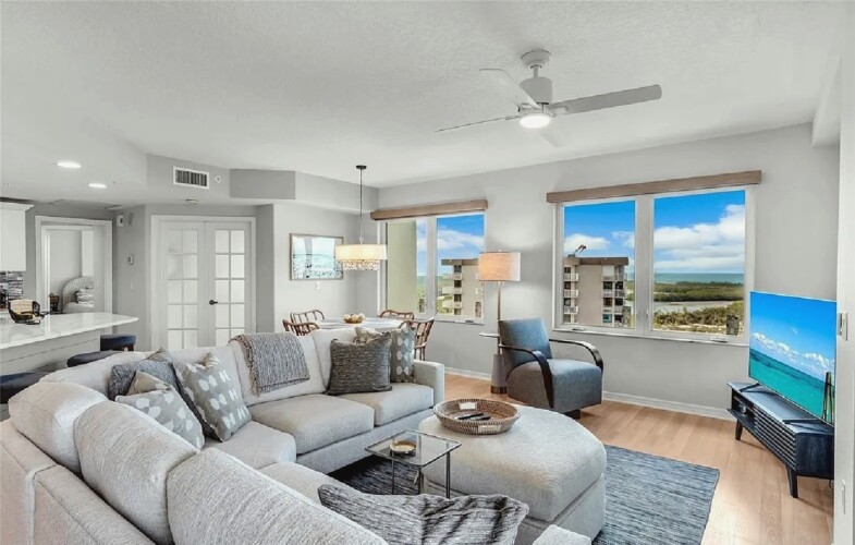 This elegant two bedroom, two bathroom beachfront condo offers stunning Gulf views from a private balcony and direct access to sandy shores just outside your door. The residence features a modern kitchen, open living area, and resort-style amenities including a heated pool, all within walking distance of dining and entertainment along Estero Boulevard, making it ideal for a relaxing coastal escape.