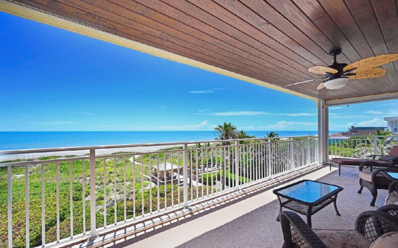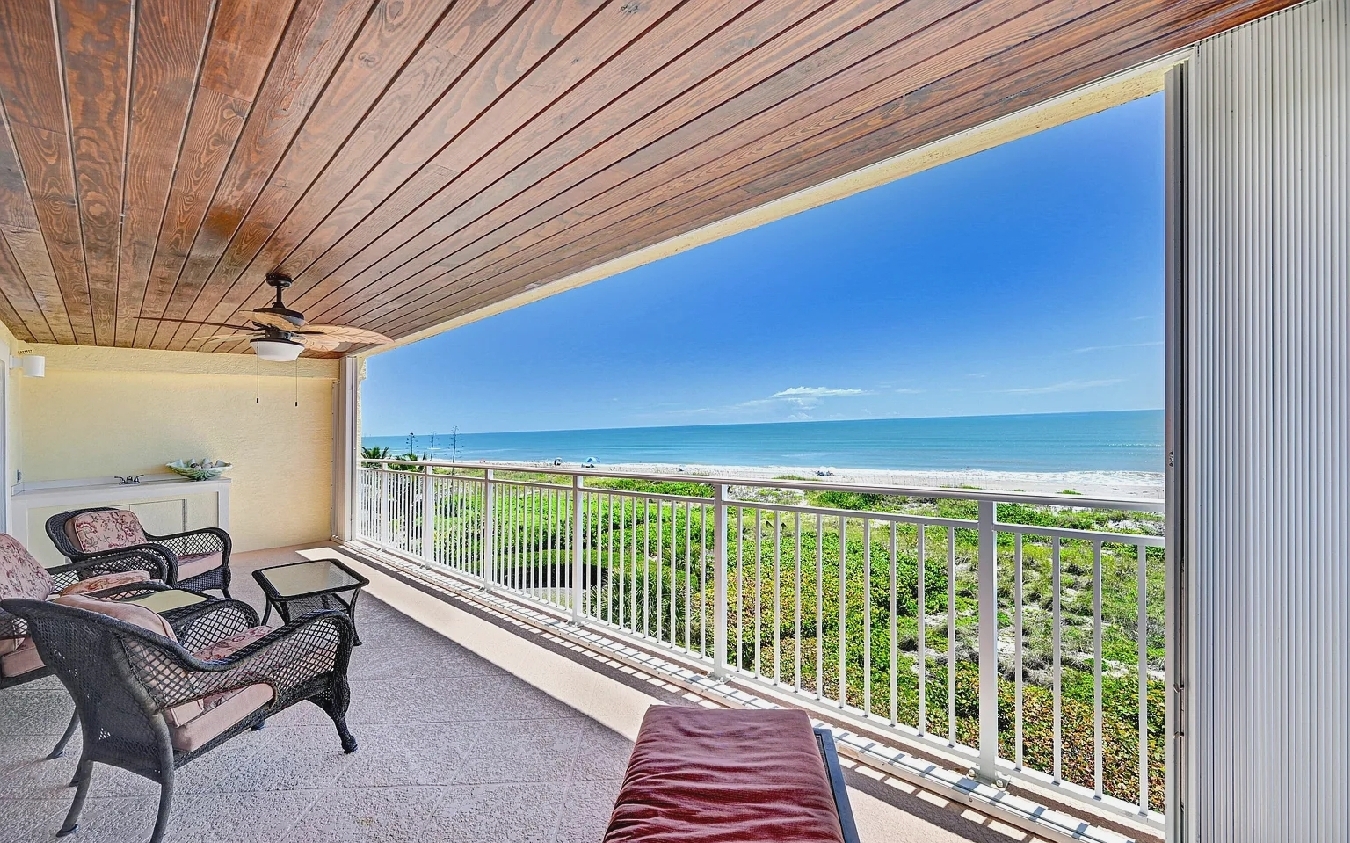 This stylish three-bedroom oceanview apartment offers a serene coastal retreat with a private balcony overlooking the Atlantic Ocean. Filled with natural light, the spacious open living area features elegant beach-inspired décor and a fully equipped kitchen, creating a comfortable setting for a relaxing seaside stay. Guests can unwind by the pool, enjoy direct access to the sandy beach, or explore Cocoa Beach’s nearby dining, shopping, and entertainment options. Ideal for couples or small families seeking a tranquil and convenient beachfront getaway with all the comforts of home.